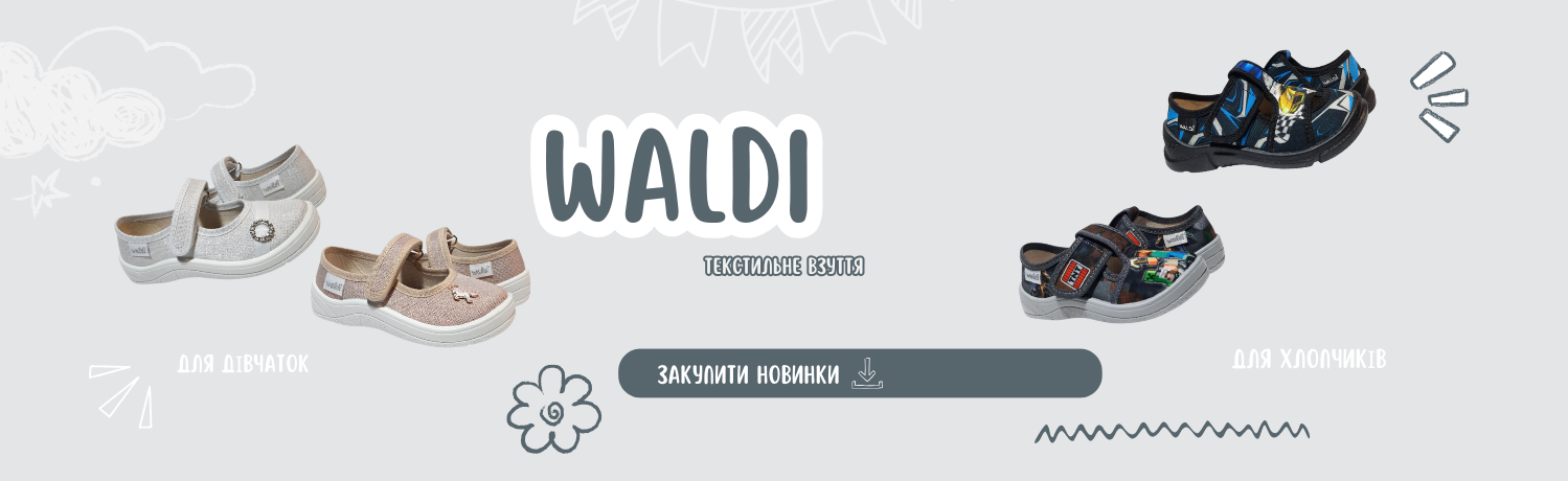 - Waldi – сучасні та модні текстильні моделі з яскравими принтами та вишивками. Призначення: для дому, школи, дитячих садків, прогулянок. Відповідає стандартам ГОСТу, регулярно проходить всі необхідні експертизи.