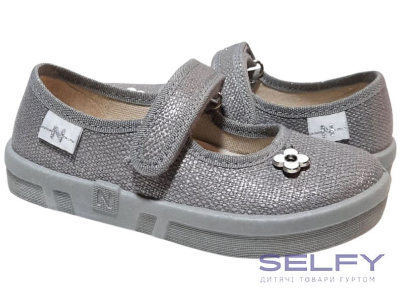 Ketty 26-32 сіра, сіра підошва, брошка квітка