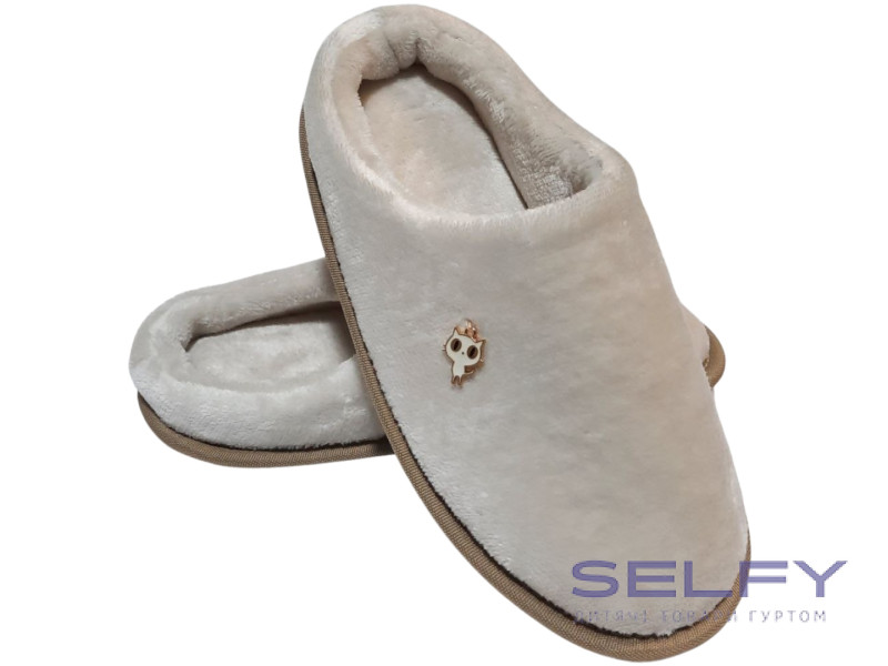 Тапочки Memory Waldi Home 28-37 бежеві, брошка котик